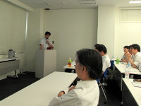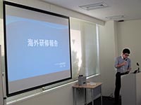 夏の全体会議の様子です。 海外研修の報告等が行われました。